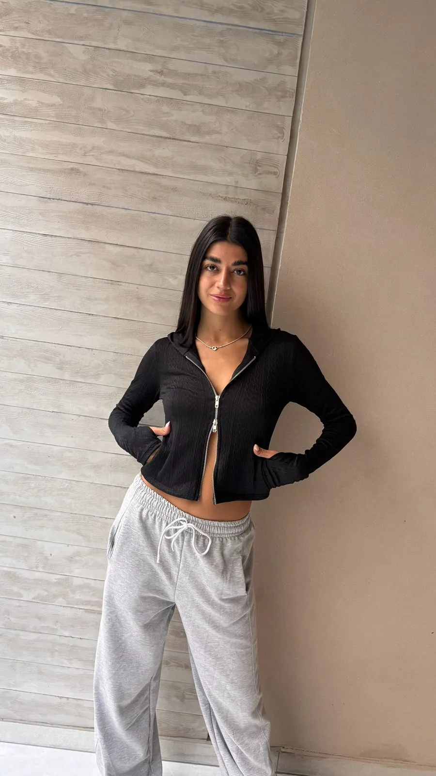 26/T85 – TOP CIERRE DOBLE CON AGUJERO P/DEDO – TEJIDO CABLE