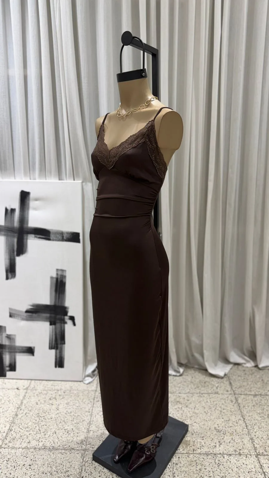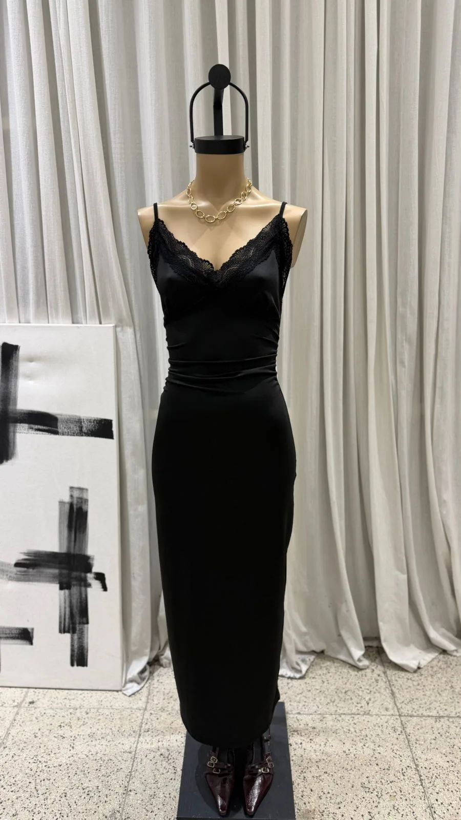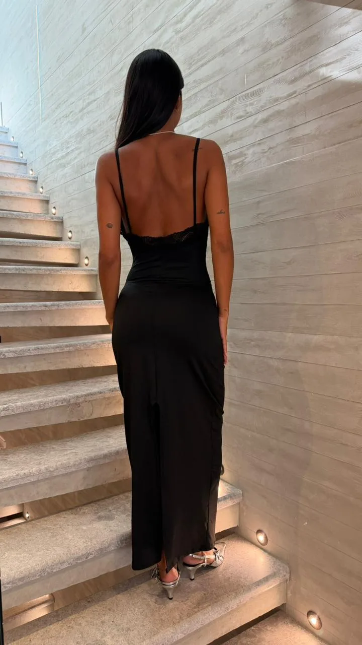 26/V13 – MAXIVESTIDO ESCOTE PUNTILLA C/N TAJO – MICROFIBRA
