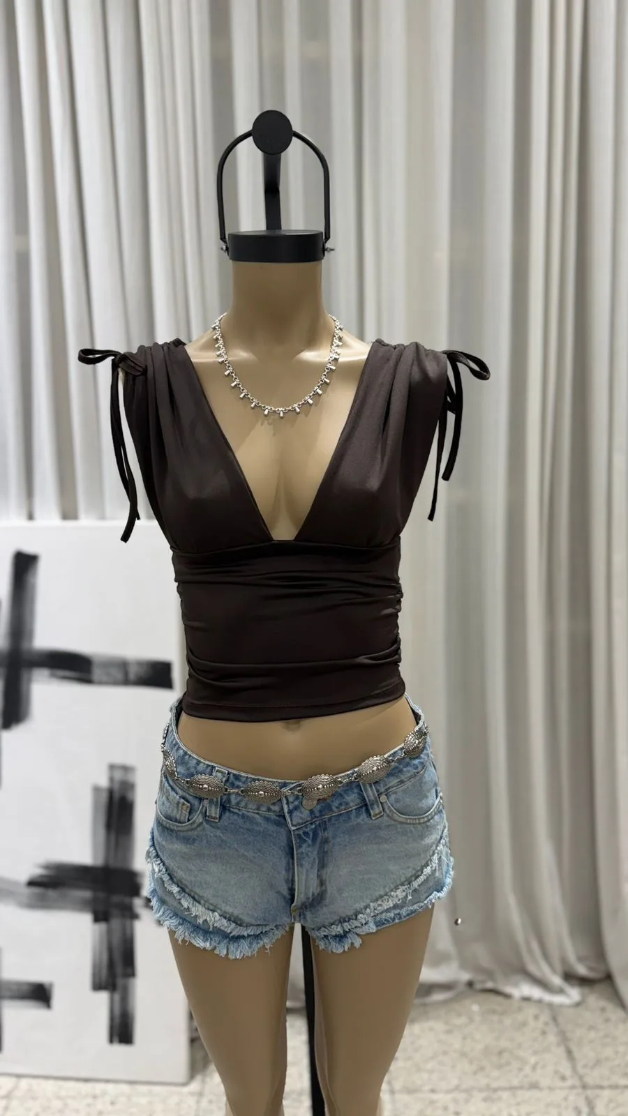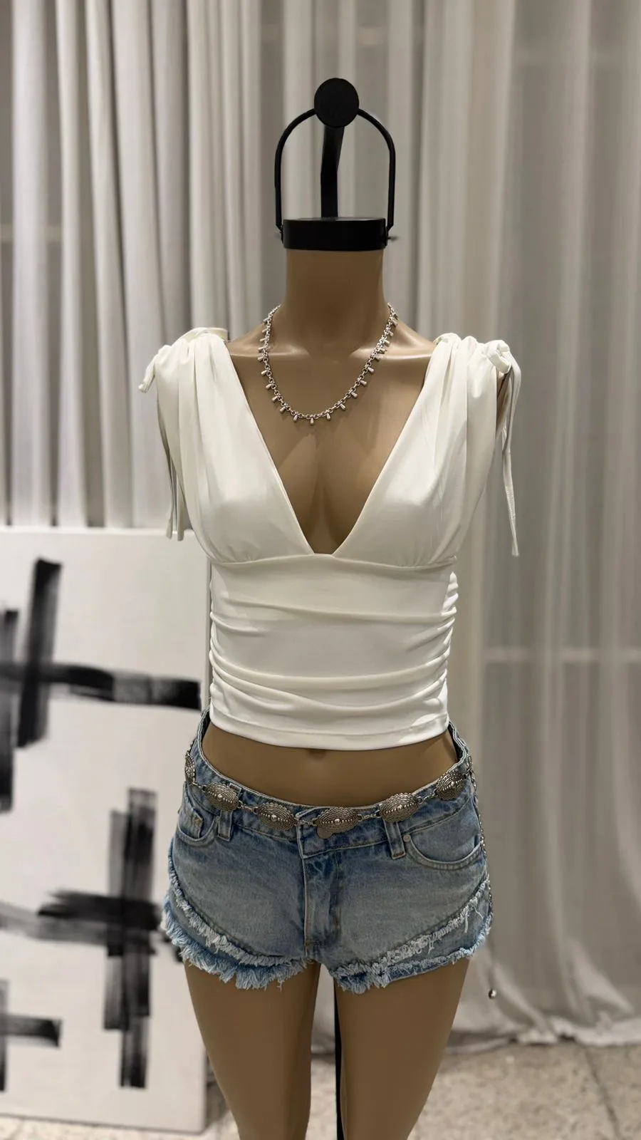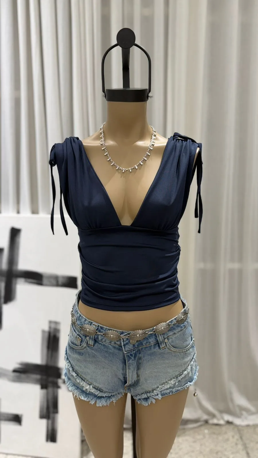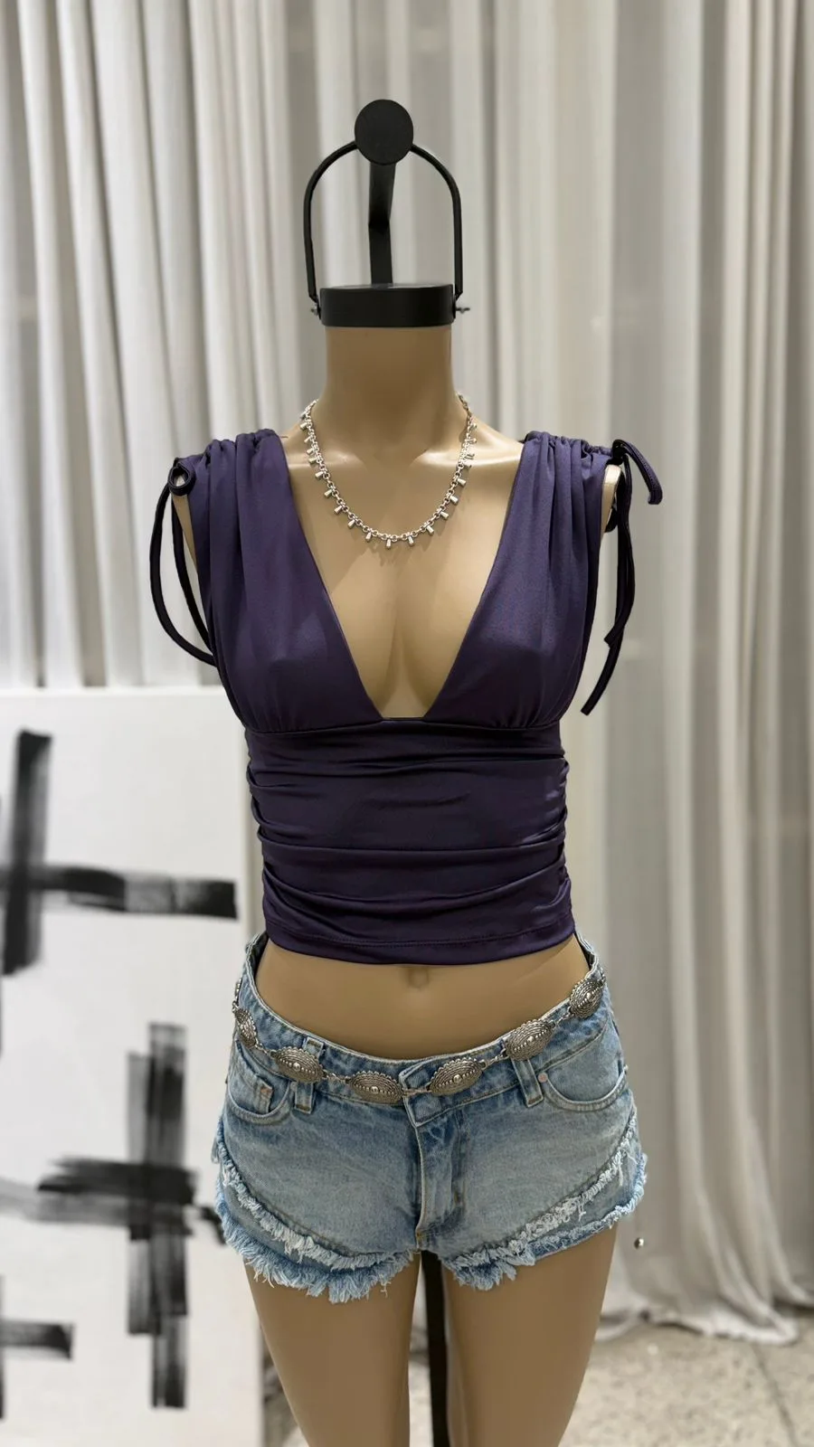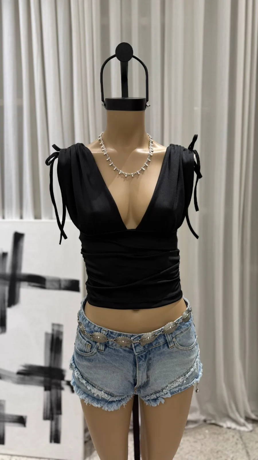 26/T22 – TOP ESCOTE V FRUNCE EN HOMBRO – MICROFIBRA