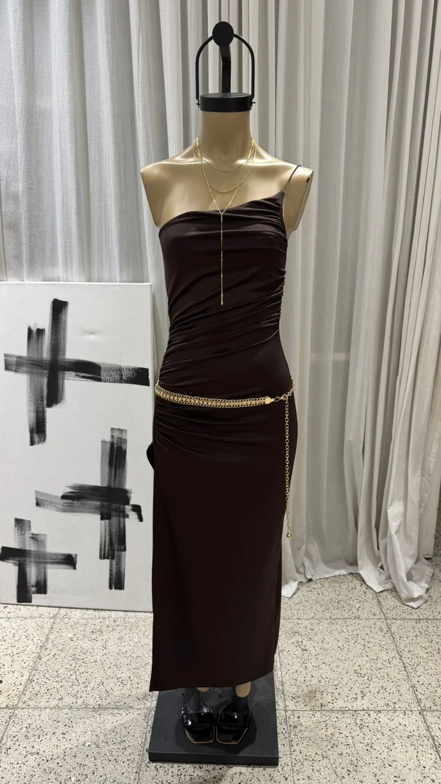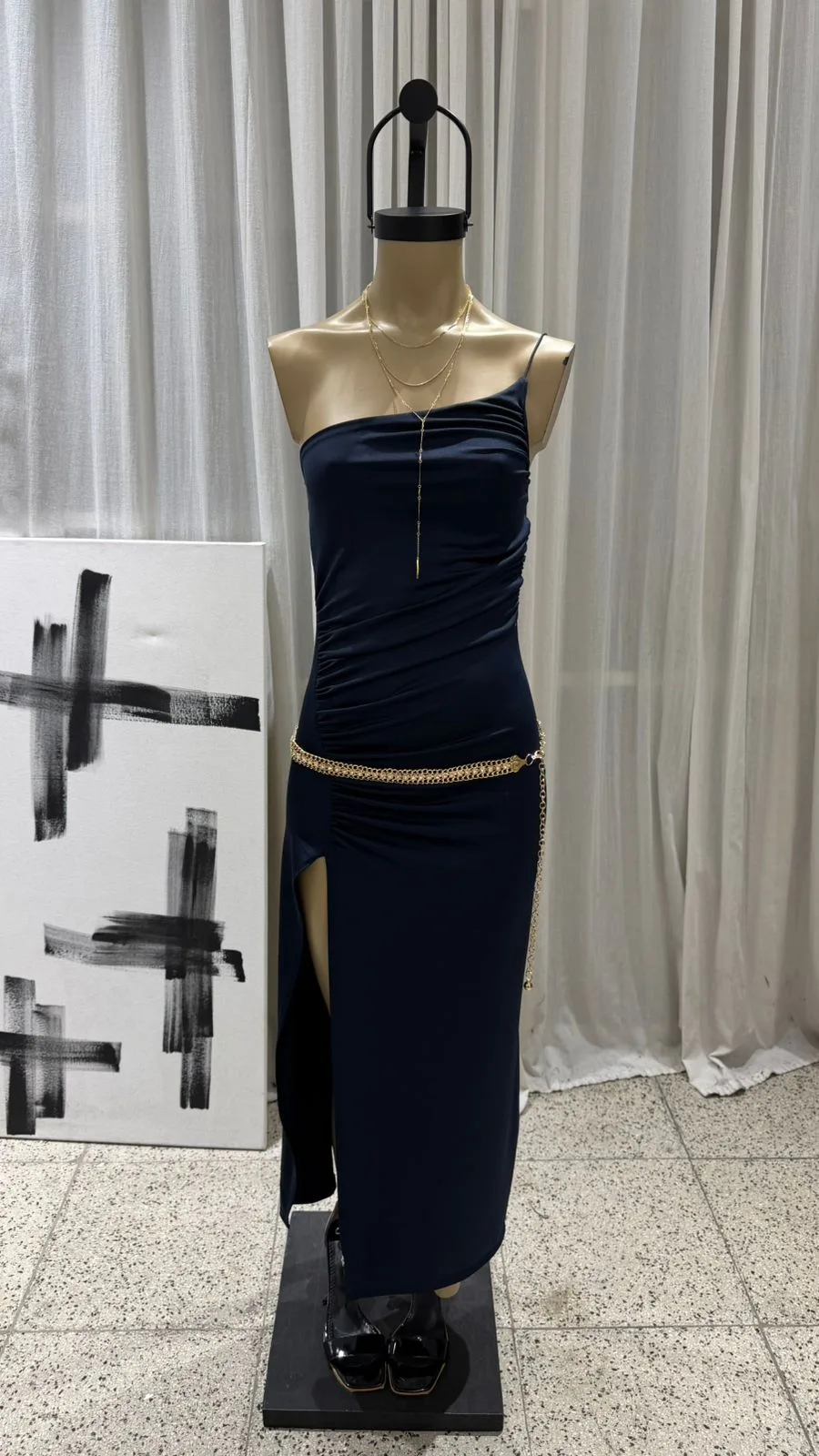 V97 – MAXIVESTIDO UN HOMBRO CORDON – MICROFIBRA